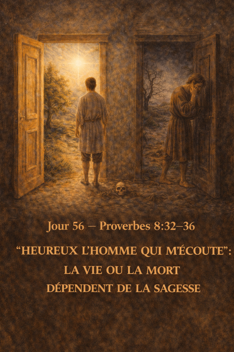 🕊️ Jour 56 — Proverbes 8 : 32–36 “Heureux l’Homme Qui M’Écoute” : La Vie ou la Mort Dépendent de la Sagesse