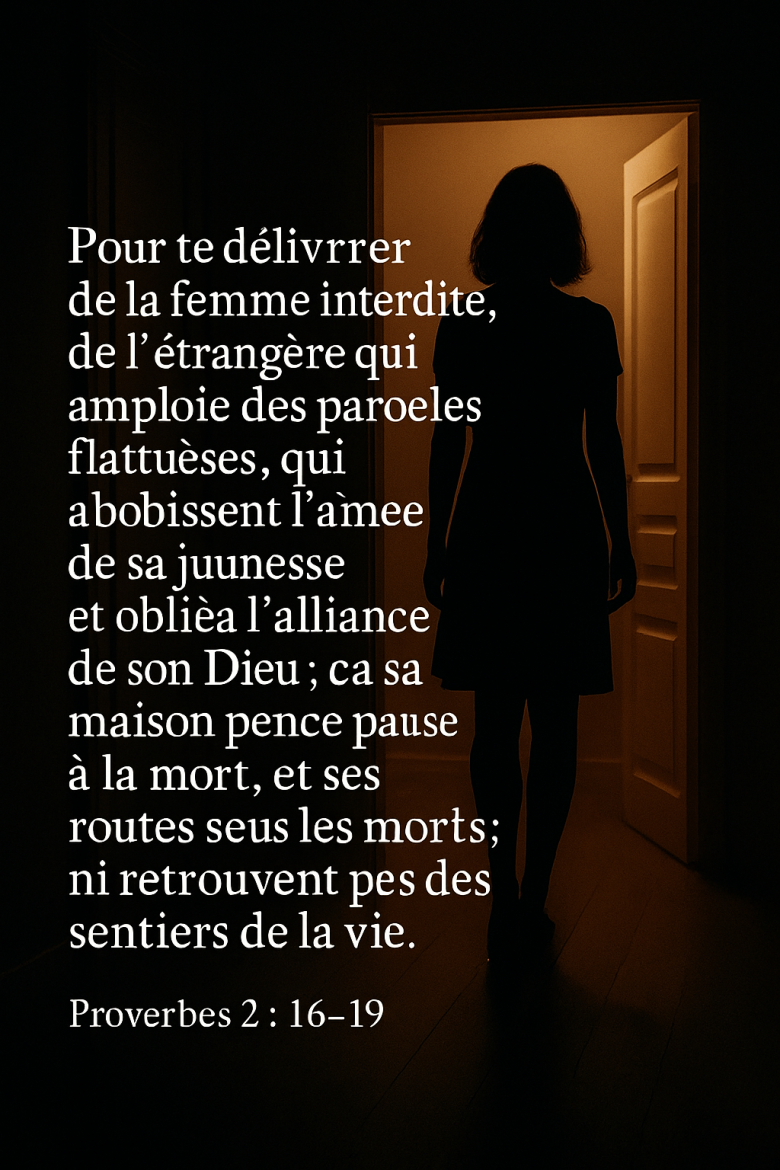 ✍️ Mot clé hébreu : Nokriyah (נָכְרִיָּה) — “femme étrangère”, symbolisant tout ce qui est étranger à la sainteté et séduit le cœur hors de l’alliance divine.