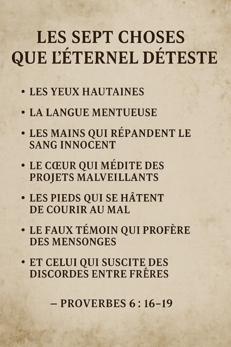 Ces “sept choses” ne sont pas une simple liste de péchés.